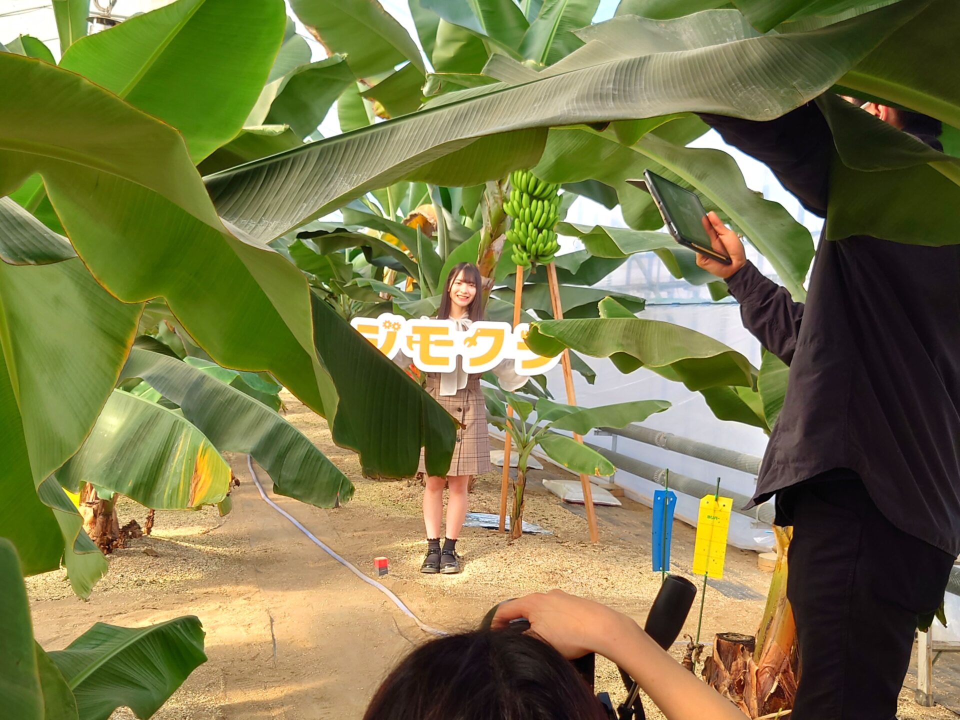 この日は好天に恵まれてハウス内の気温が上がり、バナナの葉が元気よく水分を蒸散させていたため、熱帯の気候さながらでしたが、終始爽やかな表情でカメラに向かう柴野さん。見守る私たちにも涼風が吹いているような気がしました。