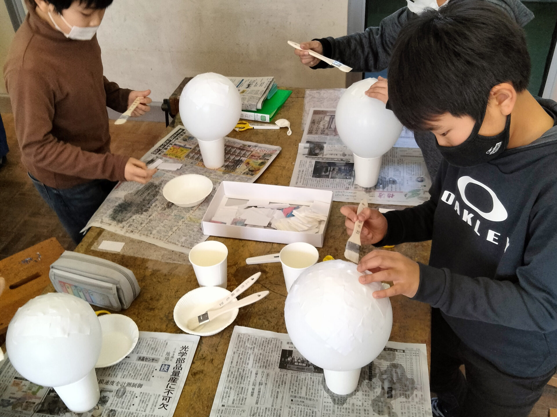 2023.03.06 荒浜小4年生の皆さんと共にランプシェードを作成しました! ファーム 3月6日(月)に荒浜小4年生の皆さんと一緒に越後バナーナ和紙を使ったランプシェードを作成しました。 なんと作り方を教えてくださったのは校長先生! 膨らませた風船に糊を塗り、越後バナーナ和紙や好きな模様を貼付して丸いランプシェードの形に作っていきました。 最後に風船を割ると素敵なランプシェードが出来上がりました! 越後バナーナジェラート販売のお知らせ 企業説明会に参加しました