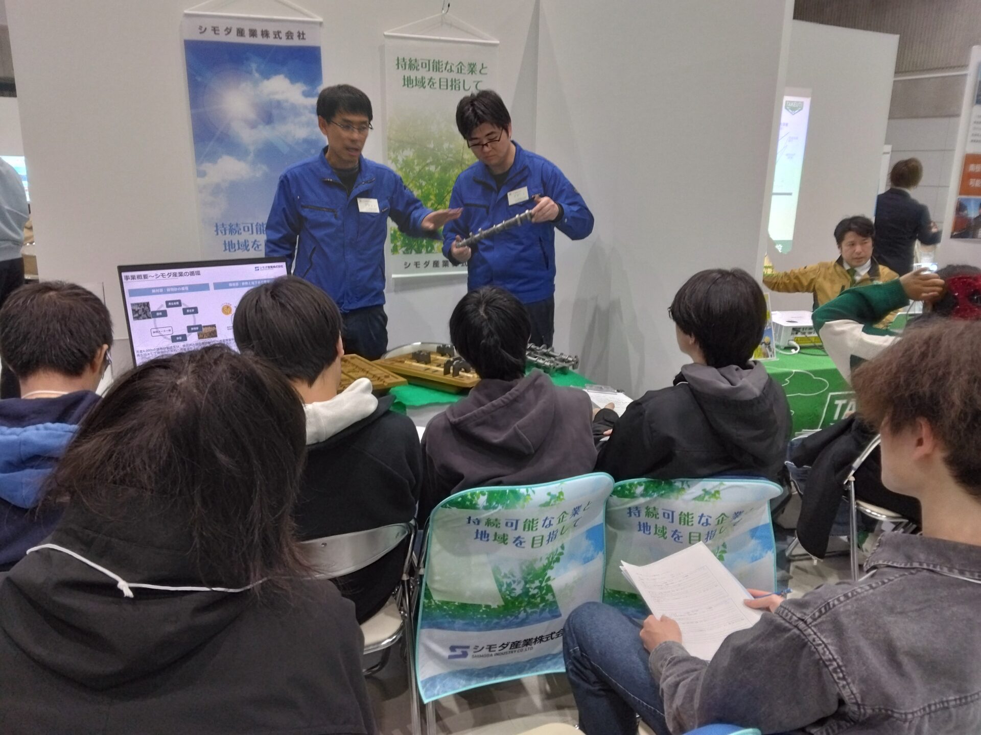 当日は製造した製品の実物を使って業務内容や技術の特徴をわかりやすくお伝えし、