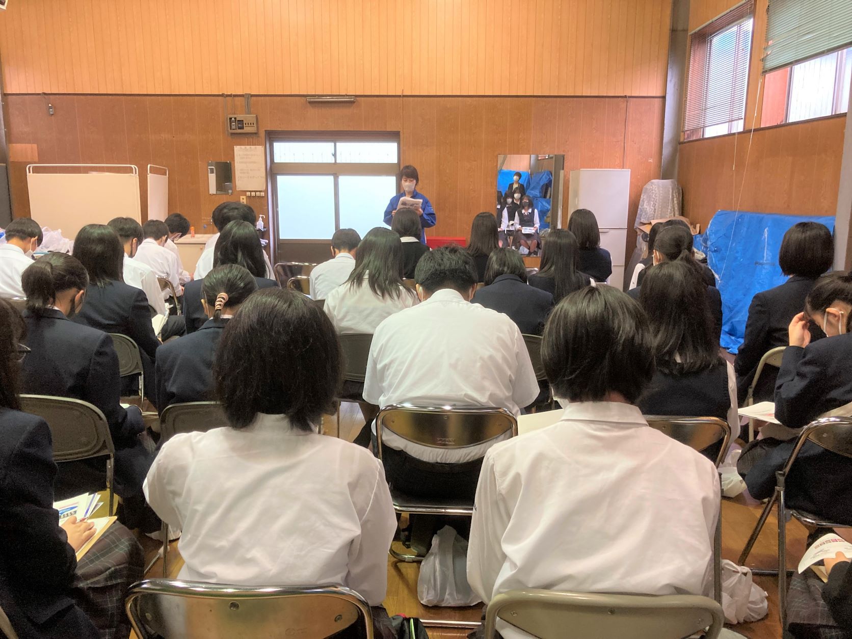 その後、場所を移して「会社の概要」「企業としての取り組み」「高校生へのメッセージ」を聞いていただきました。