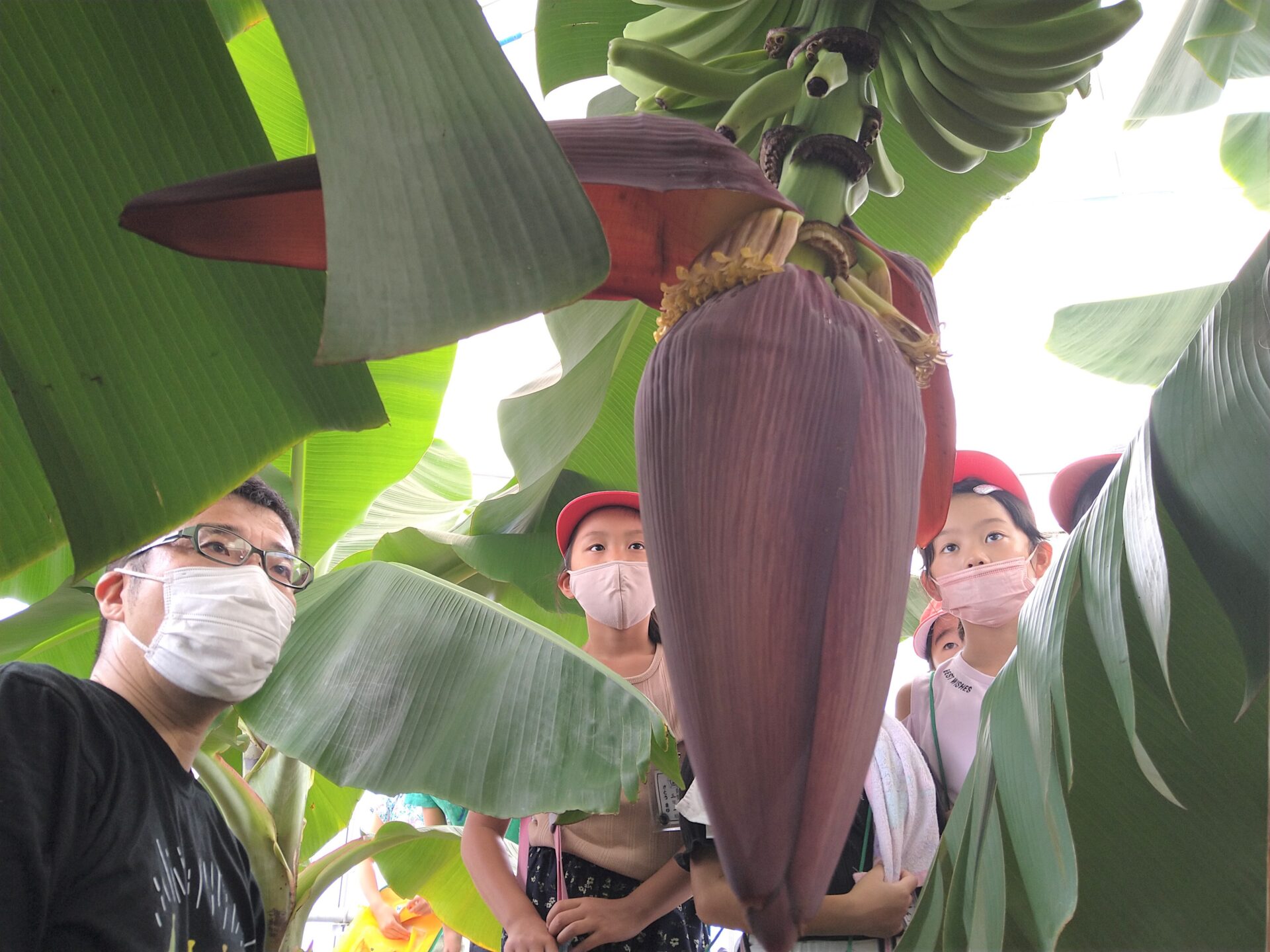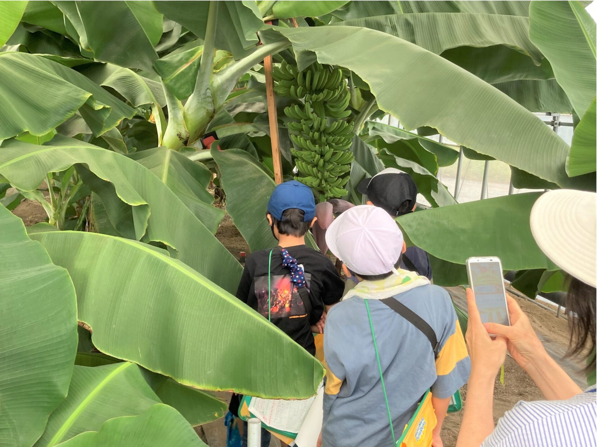 3つの班に分かれて、①ゴミ焼却炉が稼働している様子、②株を植えて間もないバナナの様子、③バナナが大きく実る様子、を班ごとに見学してもらいました。皆さんにより興味を持っていただきたく、クイズを何問か準備いたしました。