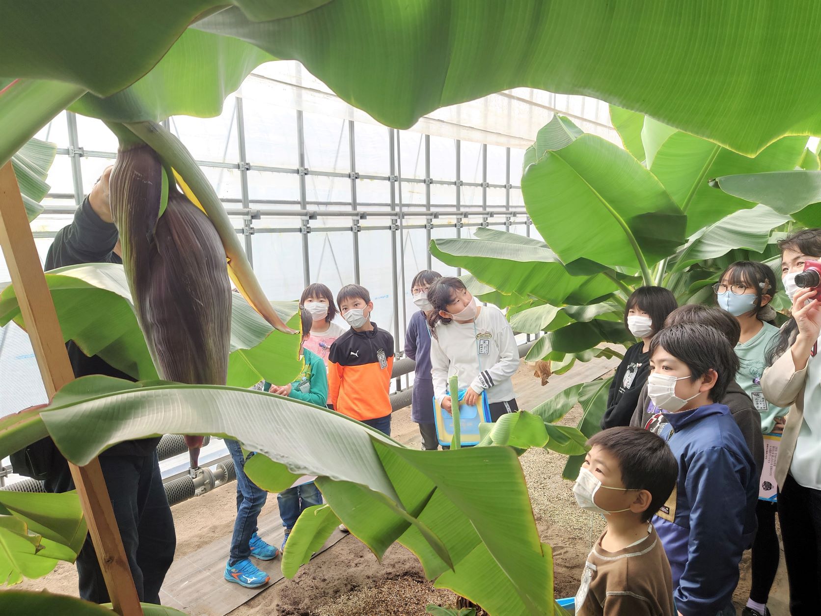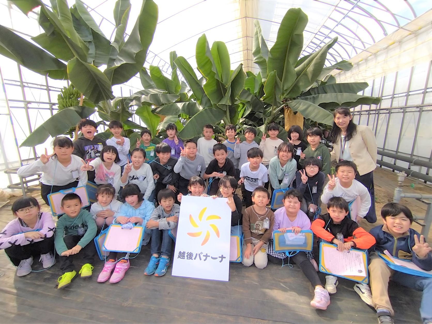 「越後バナーナを栽培することになったいきさつを聞き、柏崎を盛り上げようとするファームの皆さんの気持ちを感じたり考えたりする」が学習テーマとのこと。
