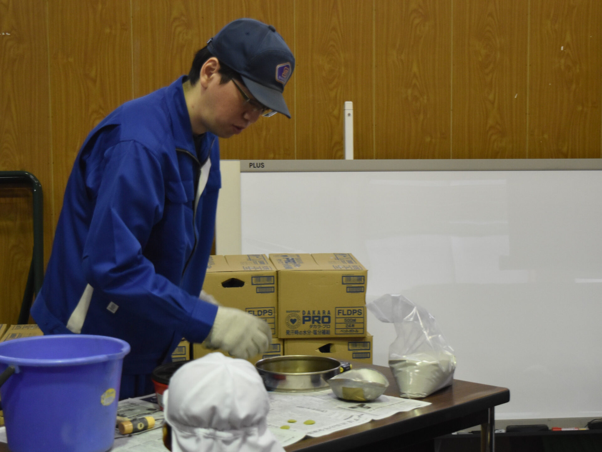 工場を回ってそれぞれの製品や製造方法について説明を受けた後、タコ焼き機を使って実際にRCSを熱した際の変化を見てもらいました。