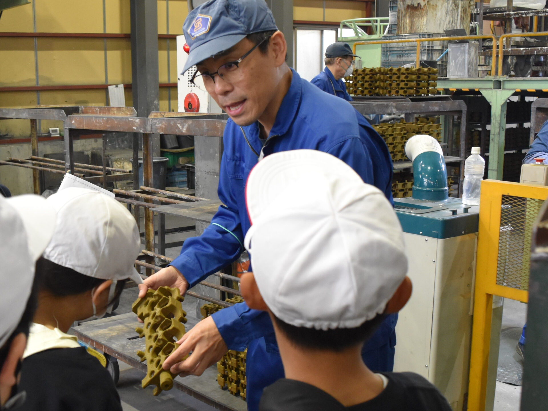 造型工場では実際の造型機やロボットの説明を受けたり…